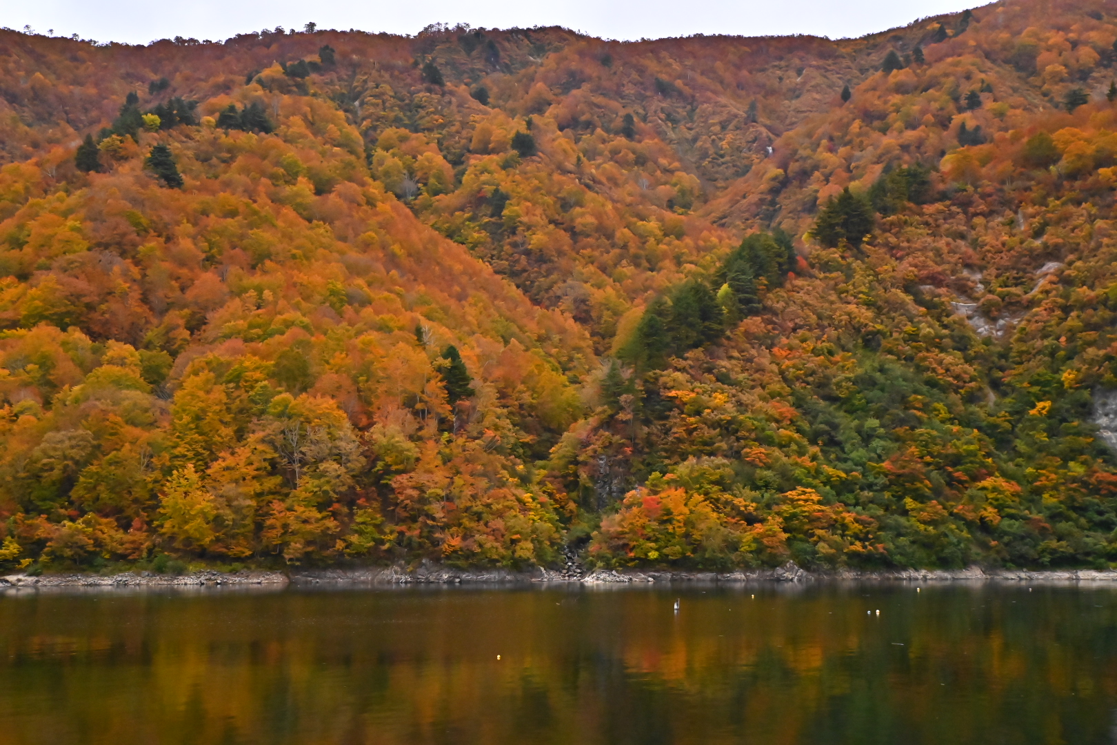 落葉 ※最新の奥只見湖紅葉情報はコチラ(リンク:奥只見湖遊覧船公式ホームページ) ※奥只見湖遊覧船は、11月8日(土曜日)で今シーズンの営業終了 |