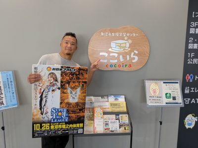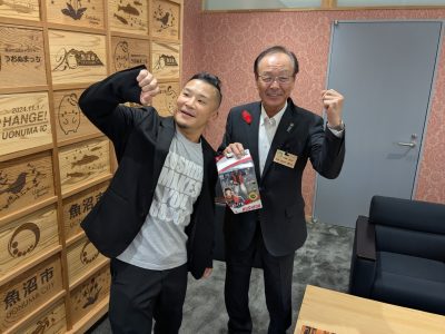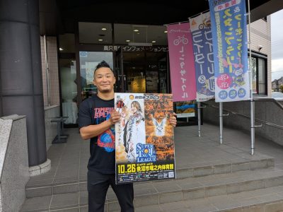 10月26日に開催される「新日本プロレス魚沼大会」に向けて、KUSHIDA選手が魚沼市を訪れ、事前プロモーション活動を行いました。