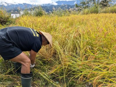 今回もKUSHIDA選手は稲刈り体験に挑戦!