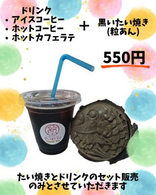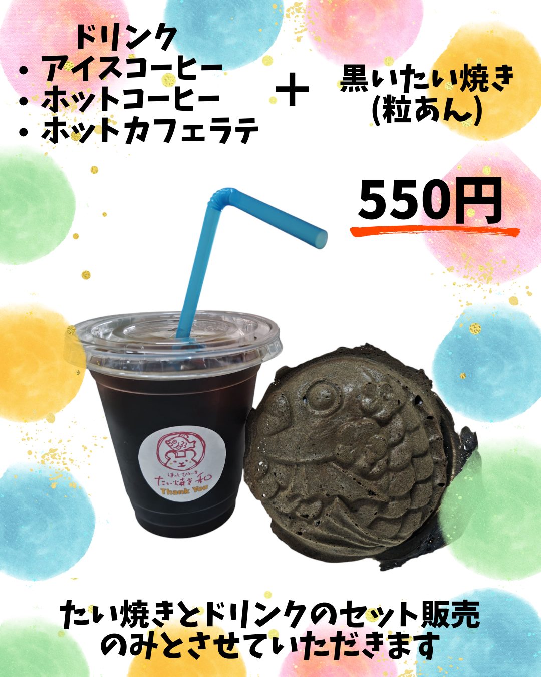 メニューは、たい焼き和さんのたい焼き&ドリンクセットが550円(税込)です!
