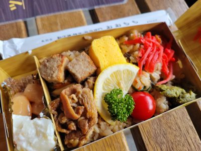 今回は、魚沼市内にあるお弁当屋さん【おおもも】さんの「開高めし弁当 お肉メインのおくただみ」を持参し、いただきました!