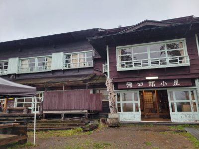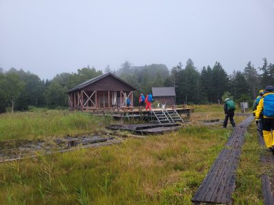 沼尻から約2時間、本日の宿泊地 見晴にある「弥四郎小屋」に到着。