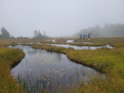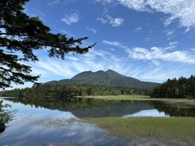 休憩所からは見えませんが、少し山の方へ進むと、実は池塘がいくつかあります。晴れた日には池塘に歩いている人や周囲の景色が映りこむ、絶好の撮影スポットなんです。沼尻に来たらぜひ素敵な写真を撮ってみてくださいね!