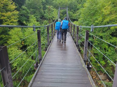 途中には、裏燧橋という吊り橋もあります。ここでは高所恐怖症の方のガイディング方法も学びます。