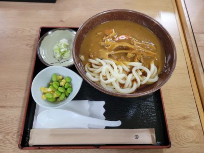 ずっと雨の中を歩いていたので温かいコーヒーを飲んで温まったり、私はエネルギーをかなり消費していたのでおにぎり+カレーうどんまでいただいてしまいました。スパイシーでとても美味しかったです!