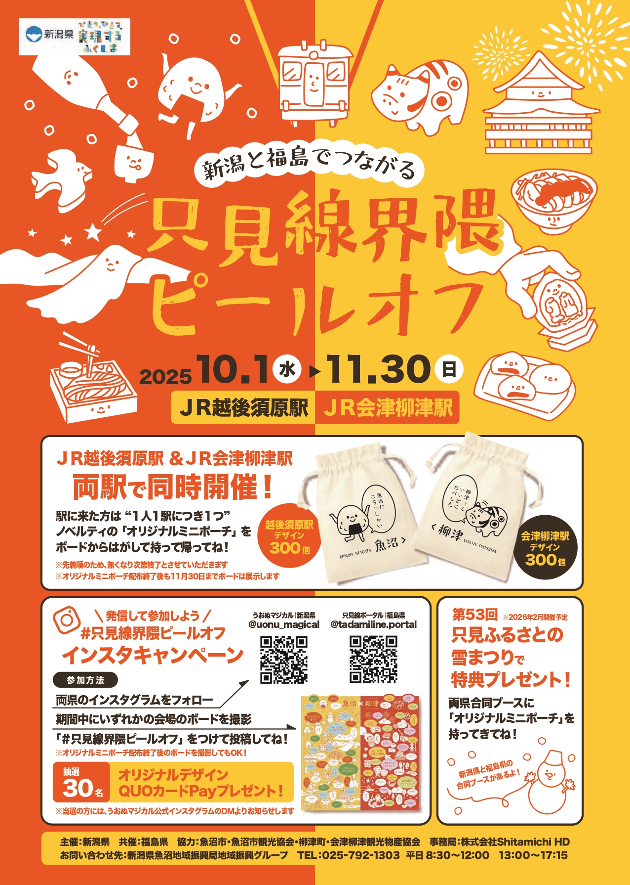 期間中にいずれかの会場のボードを撮影、両県インスタグラムをフォロー、#只見線界隈ピールオフをつけてインスタグラムに投稿すると抽選で30名に本ピールオフイベントオリジナルデザインのQUOカードPayを贈呈