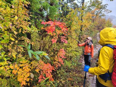 11月1日に尾瀬ネイチャーガイド養成講座の「里山ガイド研修」で魚沼市堀之内地区にある「月岡御岳遊歩道」へ行ってきました。紅葉は今が見頃!