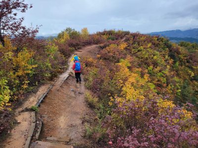山頂を出発し、再び山の尾根を歩きながら進むと…