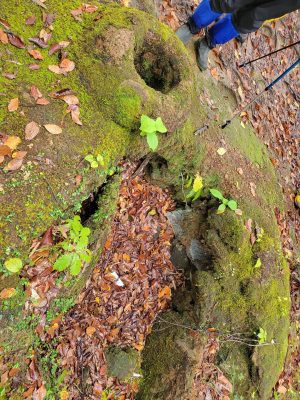 ブナの葉をよく見たことはありますか?横から見ると少し真ん中がへこんでいるんです。葉が受けた雨水を集め、枝を伝って幹に雨水が流れ、木の根元に集まった雨水は、積み重なった落ち葉がスポンジ状態になり、水がたくさん溜められるそうです。