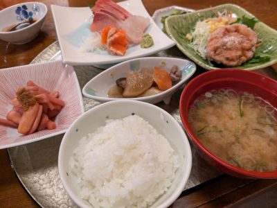 金曜日の夕方、店内はすでにお酒の入ったお客様が多い中、須藤魚屋さんで定食を注文。