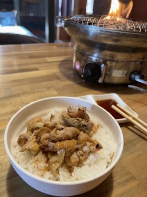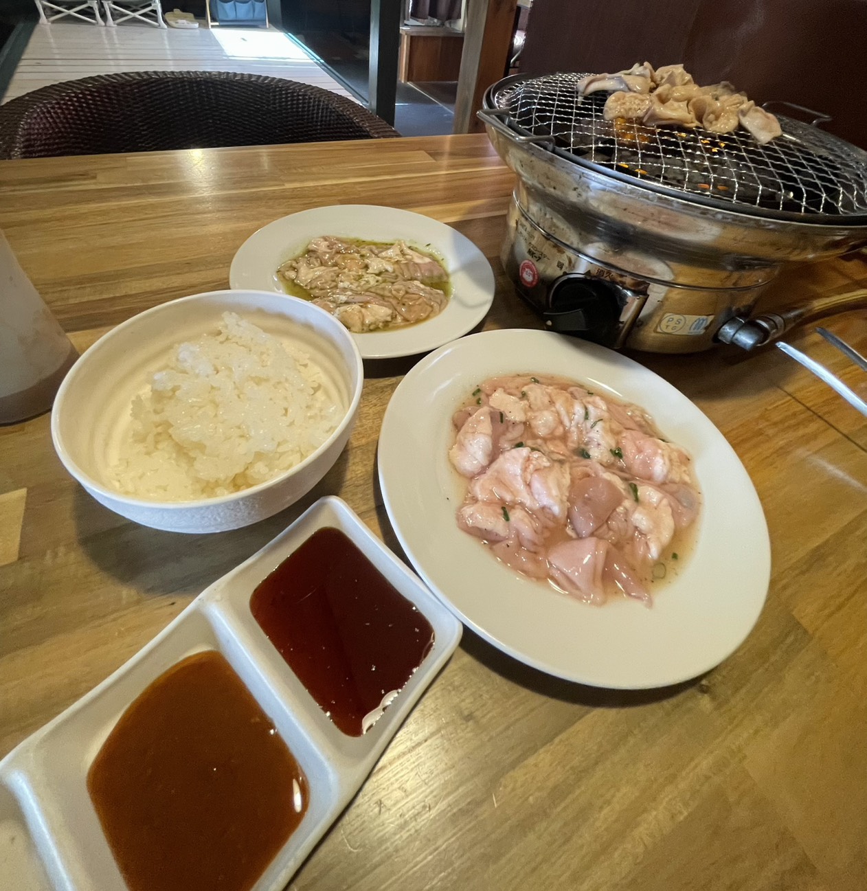 魚沼人はBBQ=「もつ焼き」とビールと訳しますが、これほどまでにコシヒカリに合うのか!…お腹もココロも満たされた60分でした。