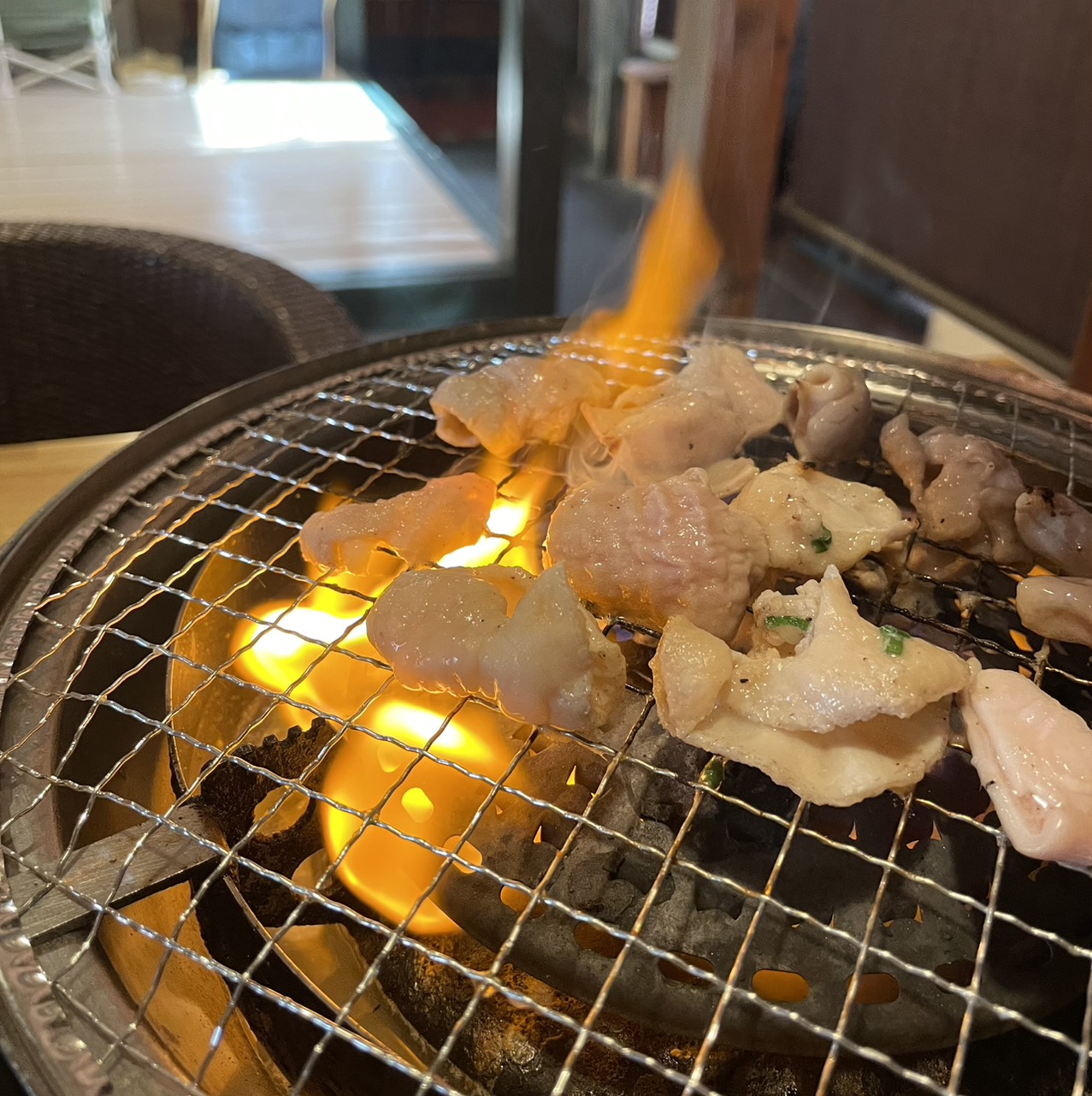 焼く⇒オーダー⇒焼きあがる⇒食う⇒美味い!⇒追加もつが届く⇒焼く⇒……