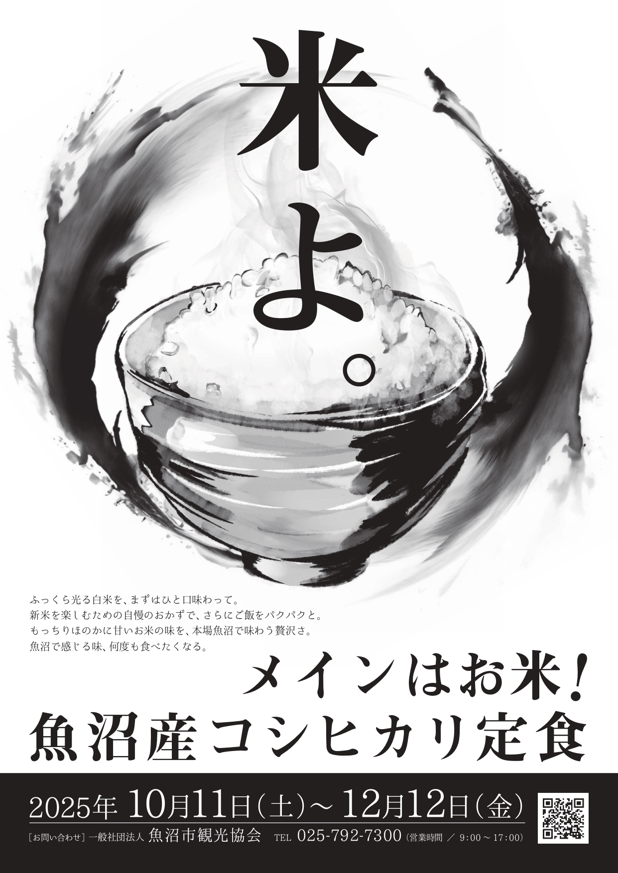 令和7年10月11日(土)から始まった『魚沼産コシヒカリ定食』ですが、提供終了まで残すところあと5日となりました。提供は令和7年12月12日(金)までとなります。