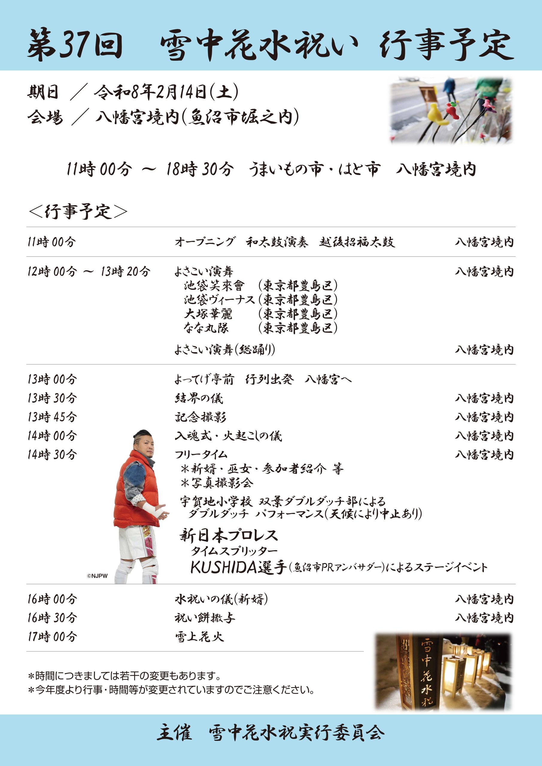 | 問い合わせ | 090-4918-5130(雪中花水祝実行委員会 幹事長:山田様) |
