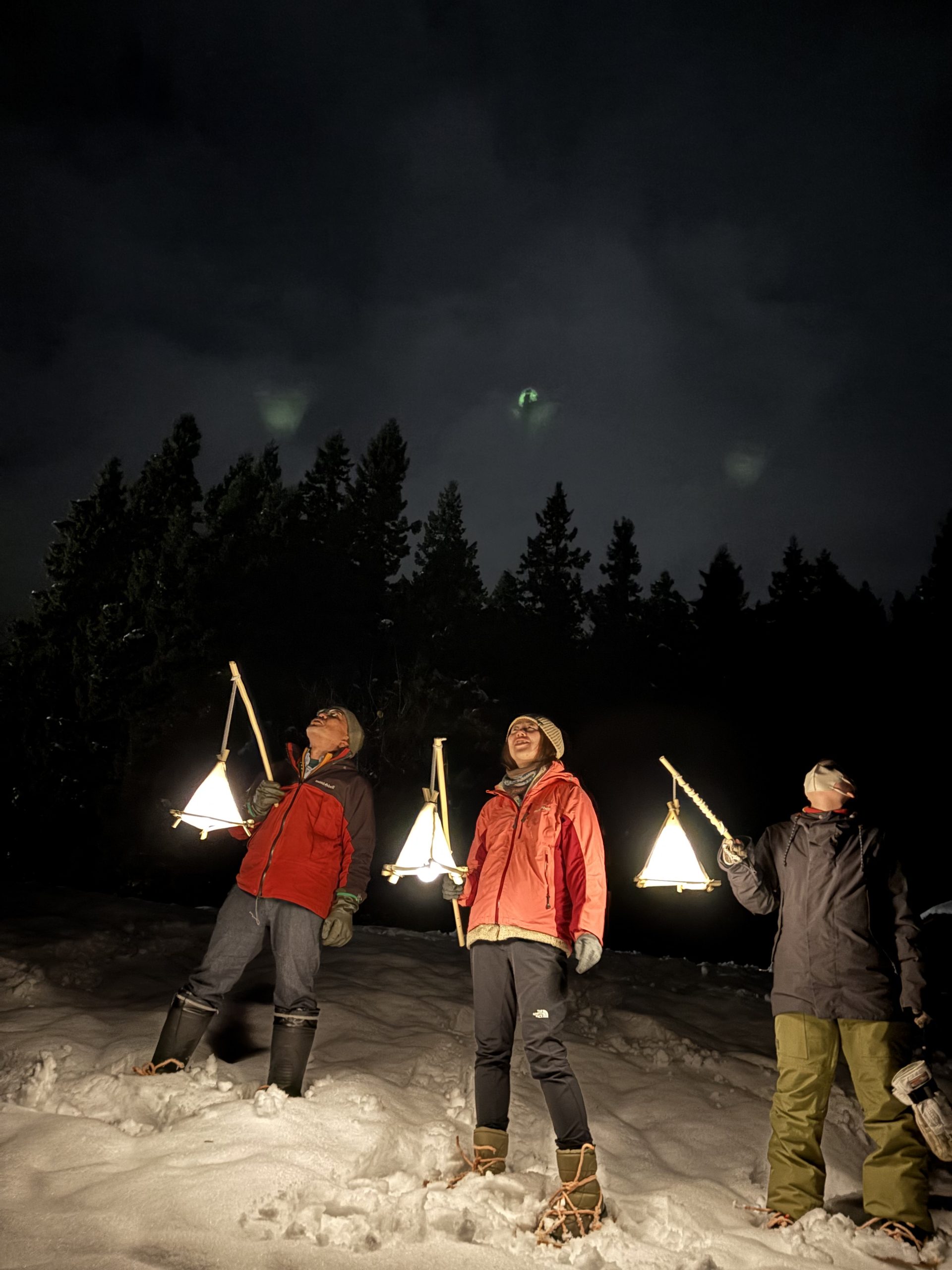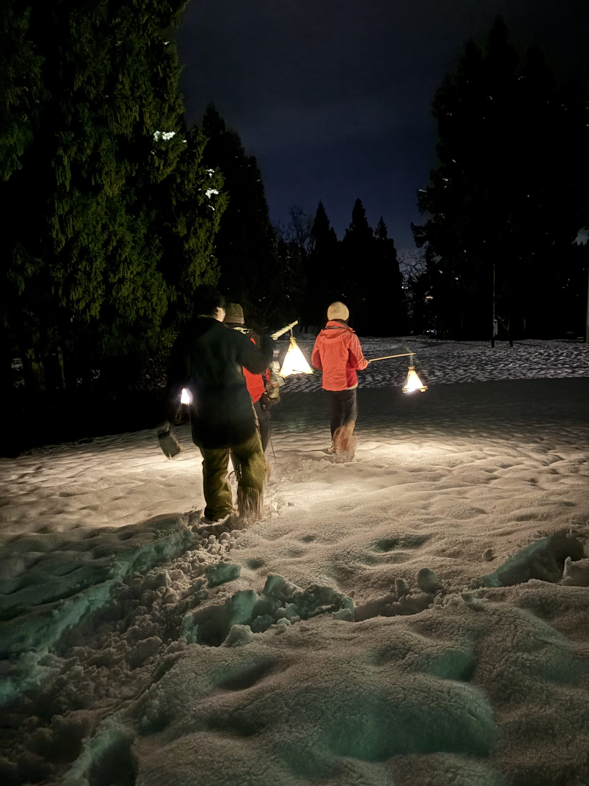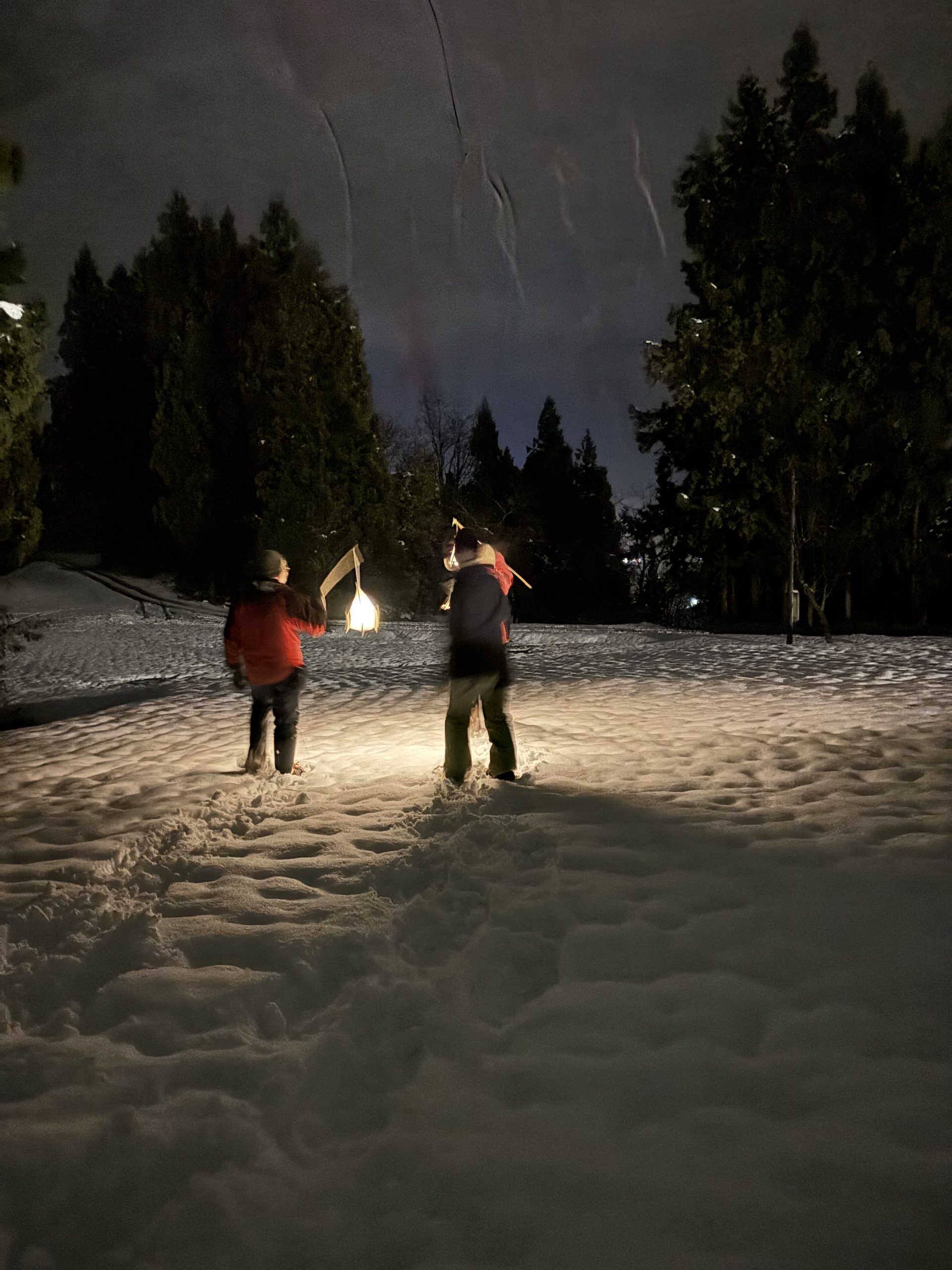 ① 集合・受付 開始時間の”10分前”までに受付をお願いいたします。 到着後、スタッフによる受付を行いますので「見晴らしの湯こまみフロント」までお越しください。ゲストルームにて、ランタン作りやナイトウォークの説明を行います。 ② ランタン作り(30分〜1時間) 地元の和紙職人から譲り受けた、和紙の原料となる木の枝と大沢和紙で、自分だけのランタン作りをしていきます!可愛くデコレーションしてもOK♪ ランタンは、当日お持ち帰りいただけます。お家のインテリアとして飾っていただくのも◎ ③ 雪の森ナイトウォーク 防寒の服に着替えて、かんじきをはいたら、いよいよ魚沼の雪の森へ出発… ランタンの灯りを頼りに、白い雪の上を進んでいきます。 雪が音を吸い込んで、あたりはしんと静か。ふと空を見上げると、星がキラキラと光っています⭐︎ 道中にウサギやキツネの足跡を発見できたら超ラッキー! ※途中の休憩時間で、温かい糀甘酒とおやつをご用意♪甘酒が苦手な方やお子さまは、甘酒ココアをご提供することも可能です!事前にお申し付けください。 ④ 魚沼のごはんタイム 雪の森から帰ってきたあとは、魚沼産コシヒカリを使った「おにぎり+味噌汁セット」を堪能します。 冷えたカラダをやさしく温めて、思わず心までポカポカに… ⑤ 温泉でリラックス+解散 最後は、温泉でリラックス♪ 今日の思い出を話したり、雪や星空のことを思い出したり。きっと、あなたにとって特別な夜になるはずです⭐︎ ご希望の方は、魚沼市内の宿泊施設にご宿泊することも可能です!