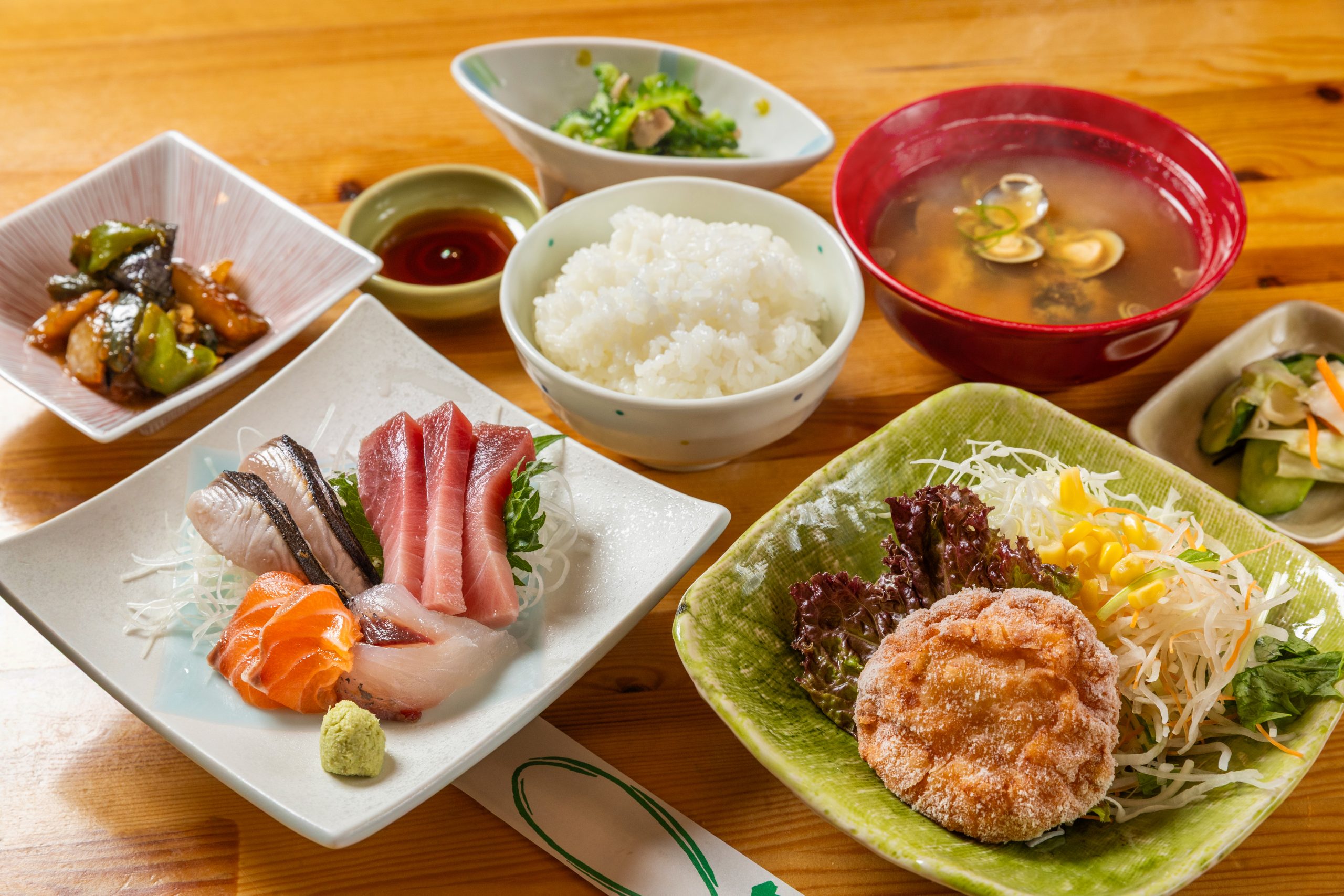 おさしみ・えび真丈揚定食