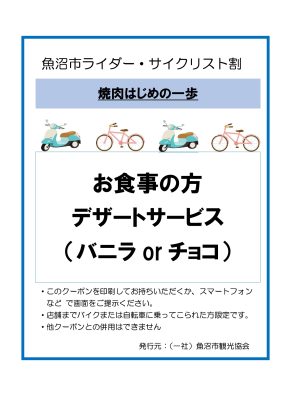 ライダー&サイクリストの皆さん!魚沼市内を巡りながらお得にグルメや体験を楽しんでみてはいかがでしょうか。