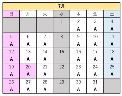 | 予約の締め切り | 7日前 17時00分まで |