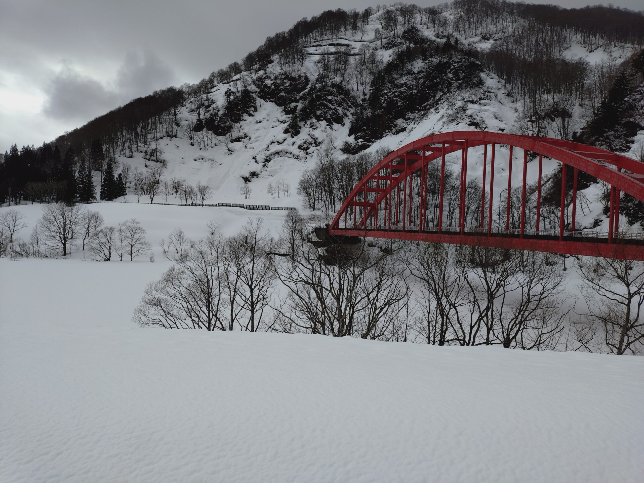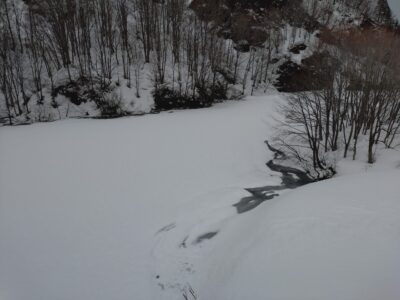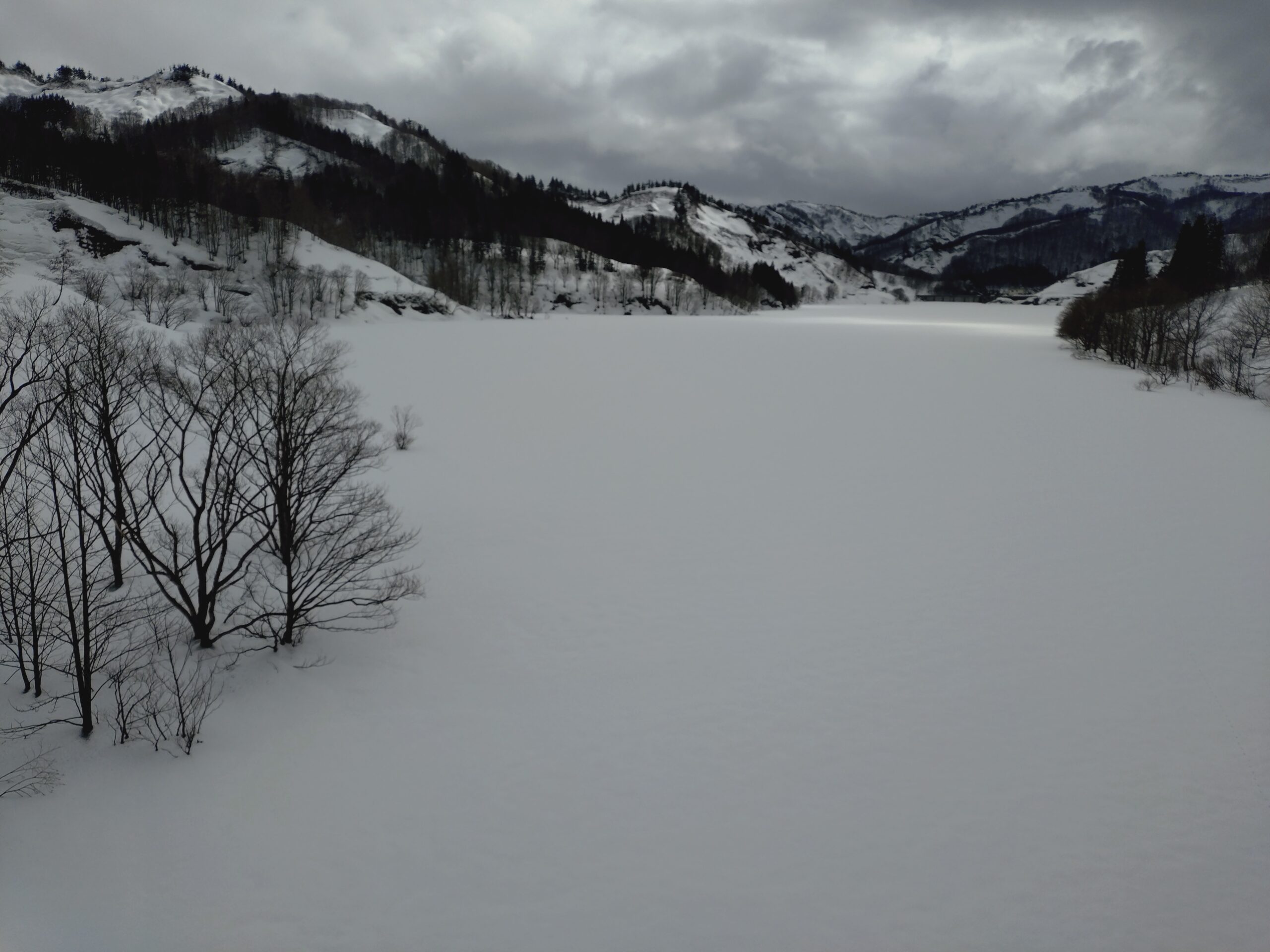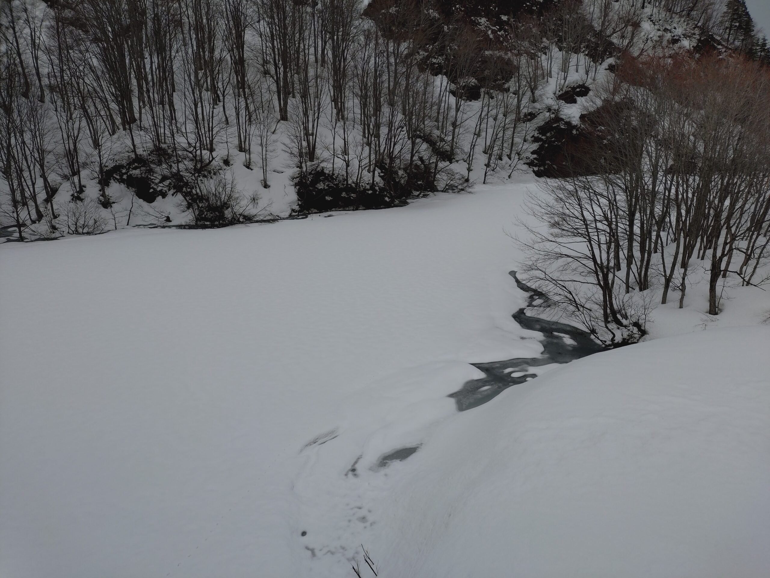 2026年は破間川ダムの水位が下がっていないため、例年のような雪流れの景色にはならないと思われます。予めご了承ください。